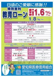 | ◆教育ローン <スマート> ◎金額:2千万円まで ◎期間:15年以内 完済時年齢 満80歳まで ◎金利:年1.8%~ ◇歯・医・薬学部:年1.6%~ *2千万円を超える教育ローンには、 さらに「教育ローン<ワイド>」を お申し込みください! (合算で最高4千万円まで可!!) |